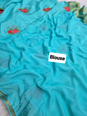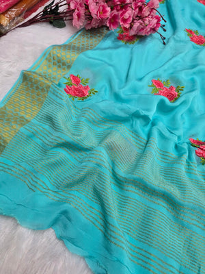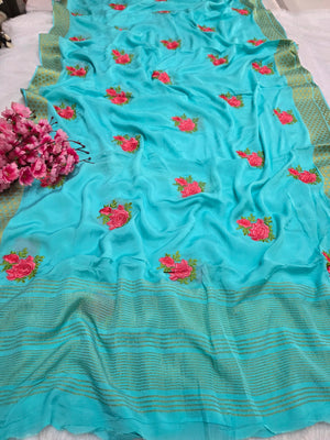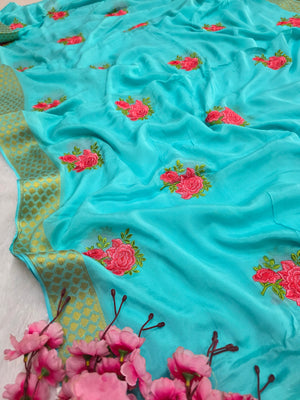 C78005 Exclusive Fancy Pure Chinon Saree with Embroidery