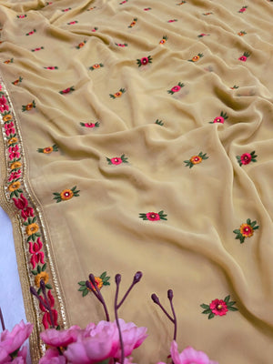 C78006 Exclusive Fancy Pure Georgette Saree with Embroidery
