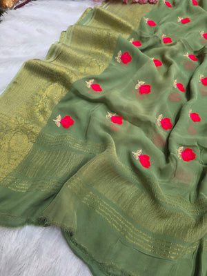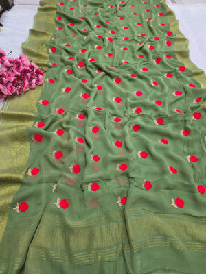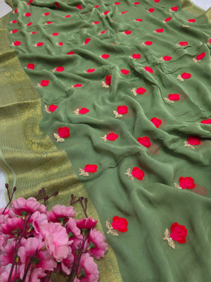 C78007 Exclusive Fancy Pure Georgette Saree with Embroidery green