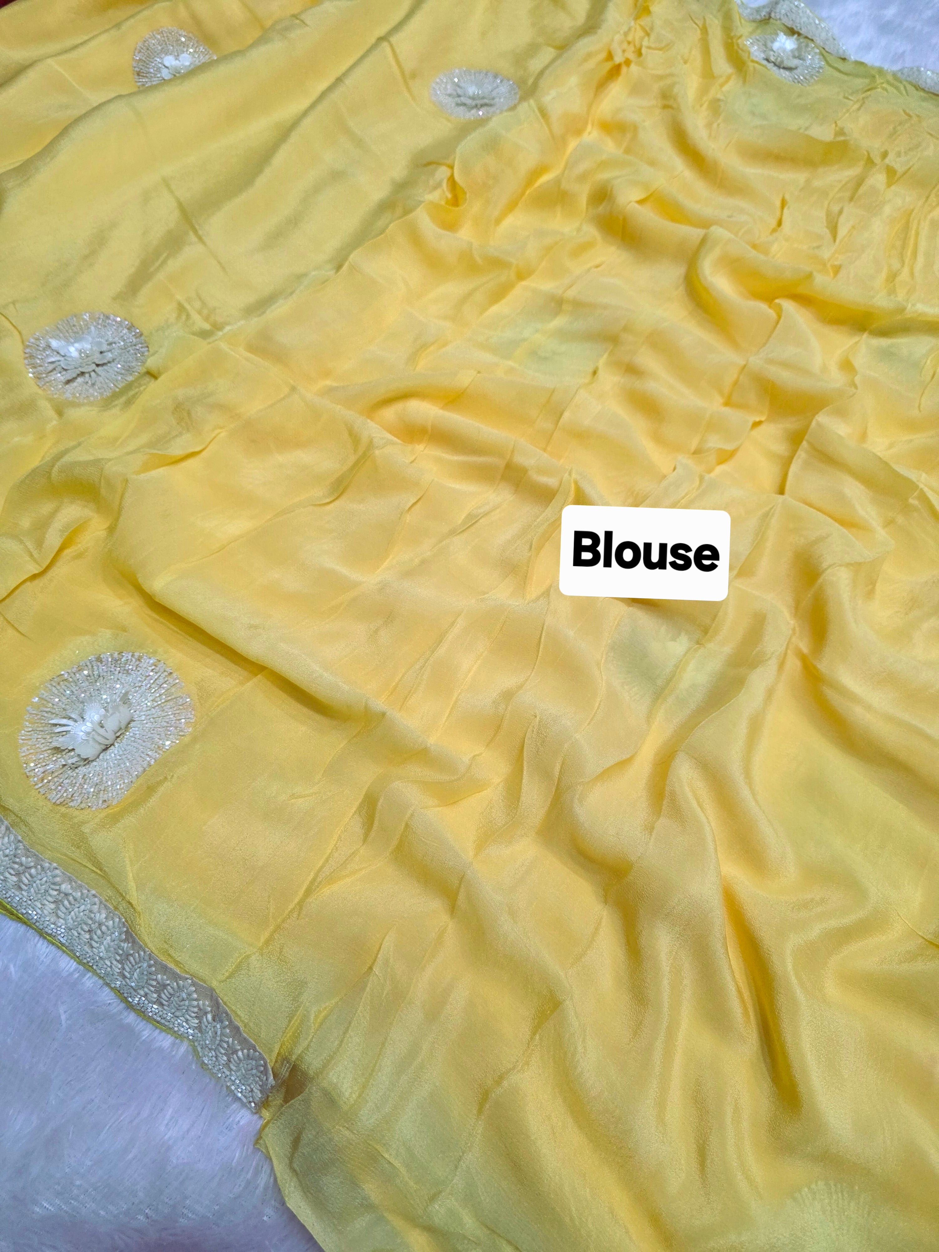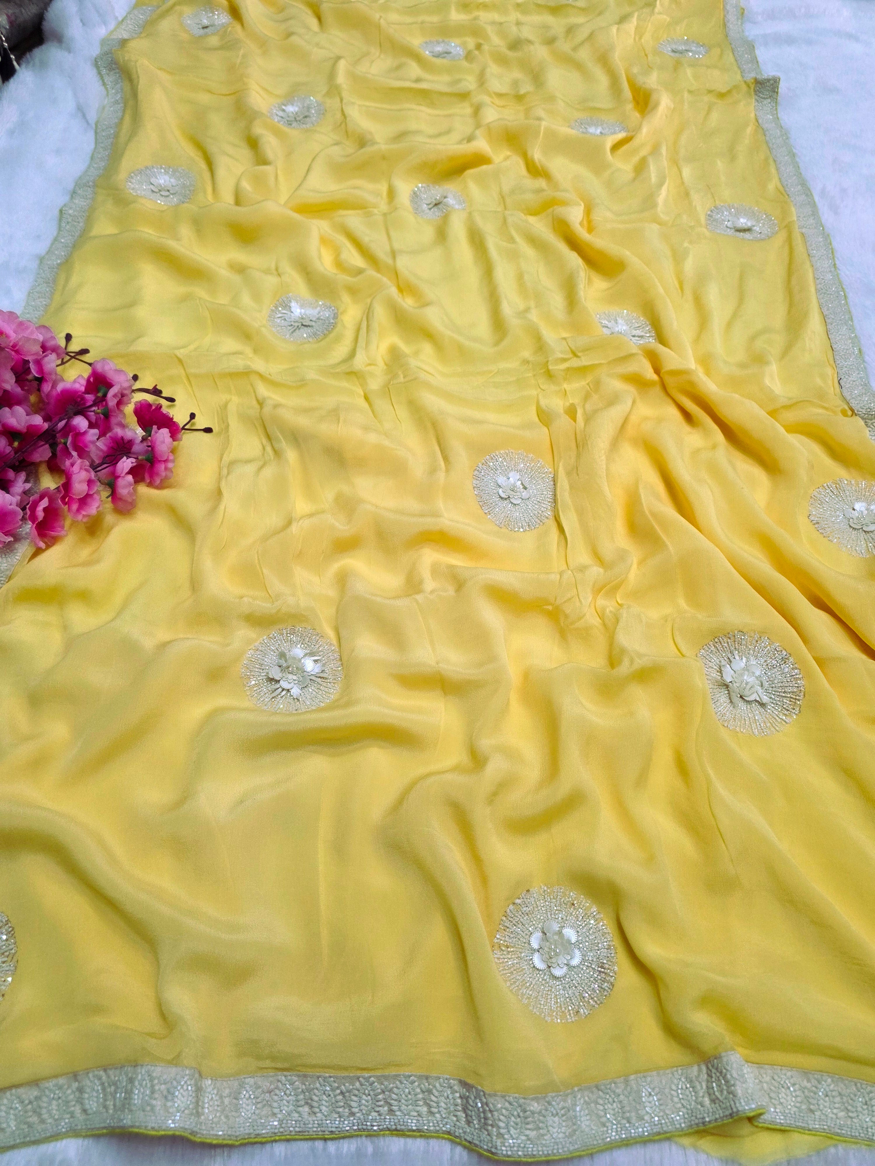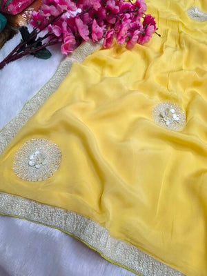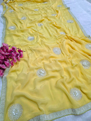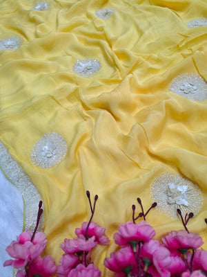 C78008 Exclusive Fancy Pure Chinon Silk Saree with White Cutdana Work yellow