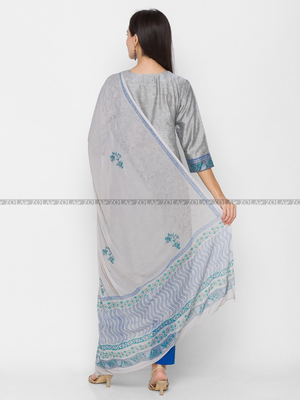 - Grey Cotton kurti with Pants Suit for Women