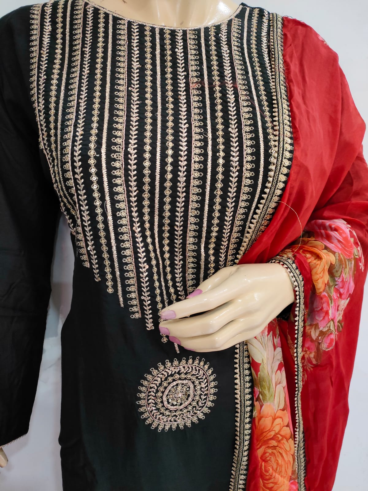 - Fabric: Kurti (Maslin), Plazzo (Maslin), Dupatta (Abutai)