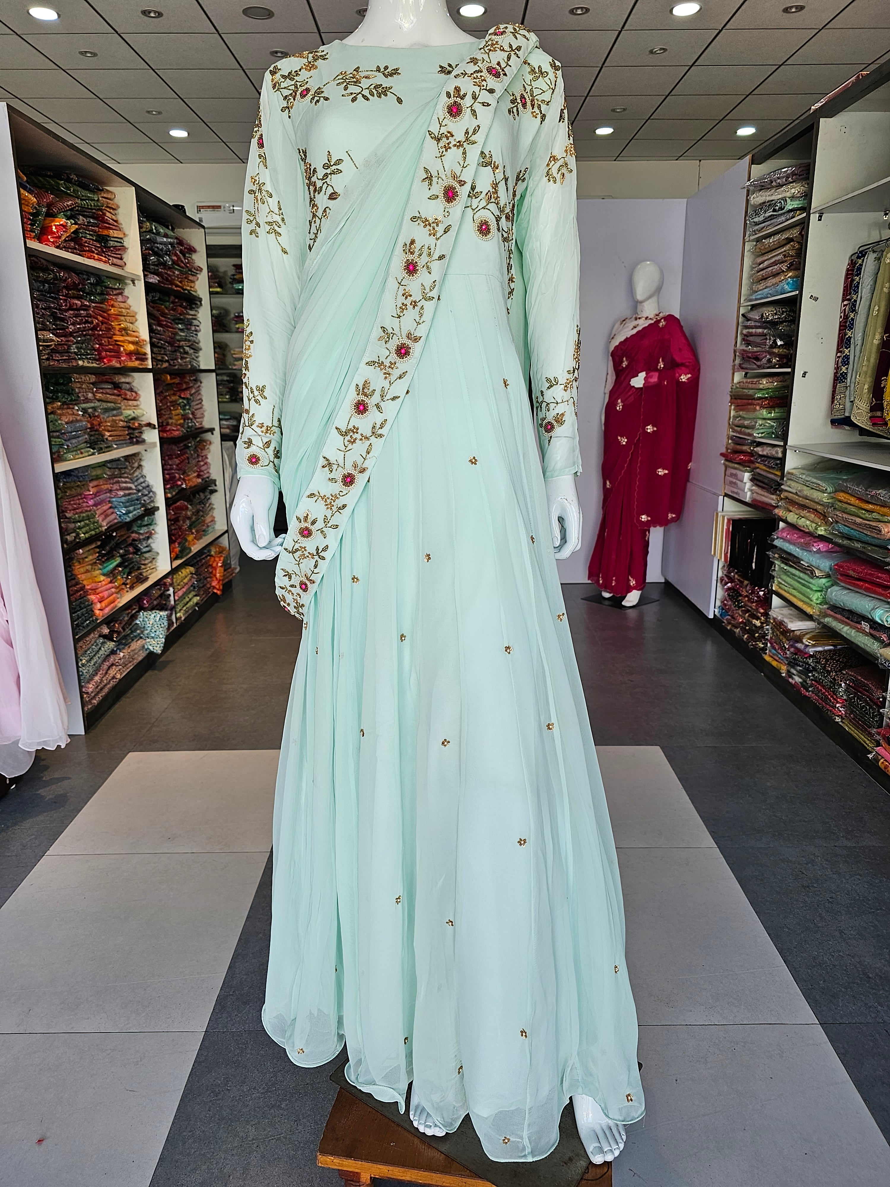 Designer Pure Georgette Gown with Heavy Cutdana Handwork