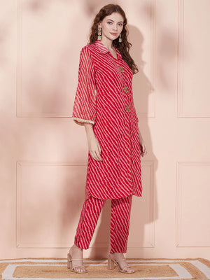 11151 Leheriya Foil Printed A-Line Kurta With Pant - Red
