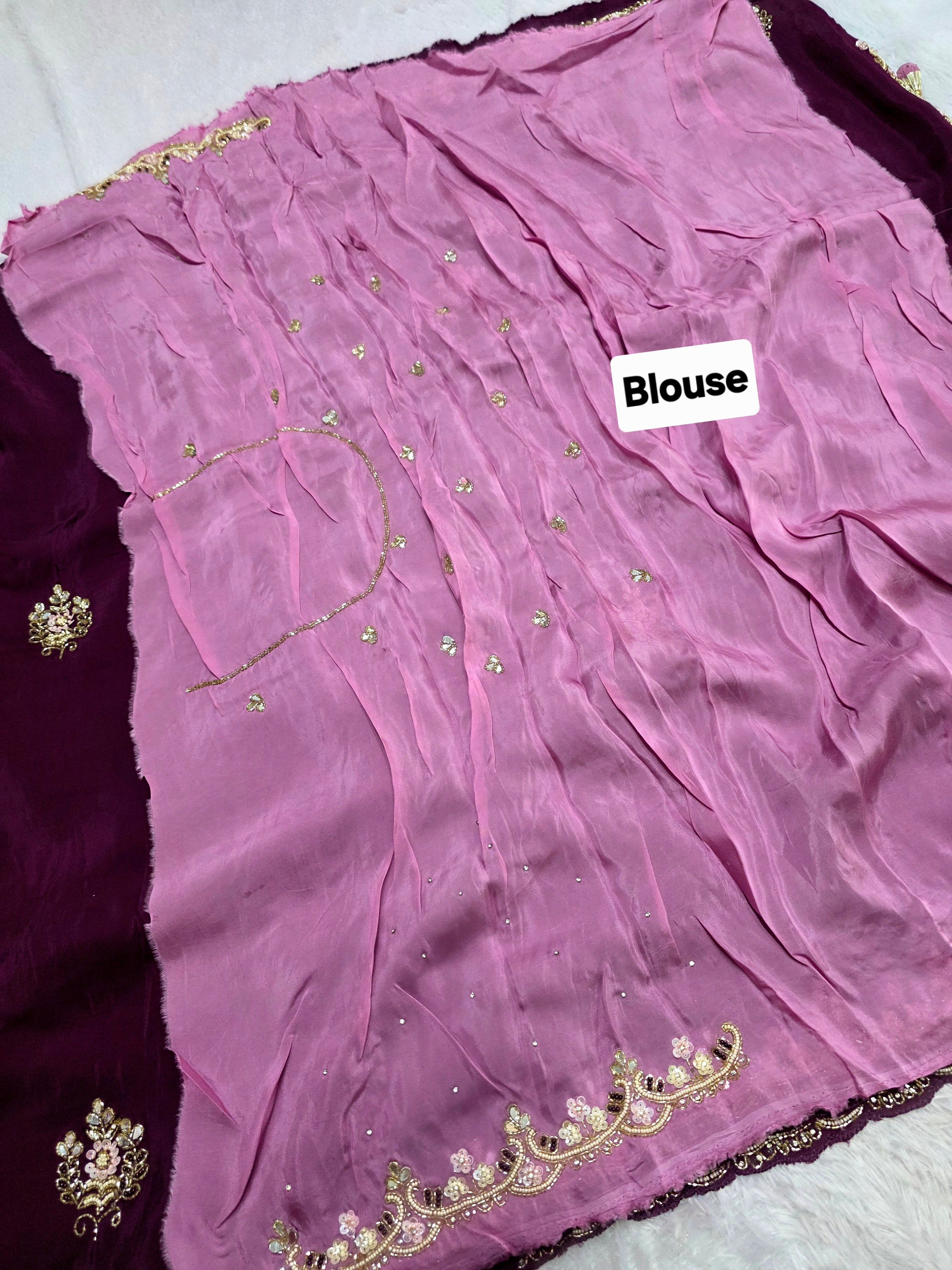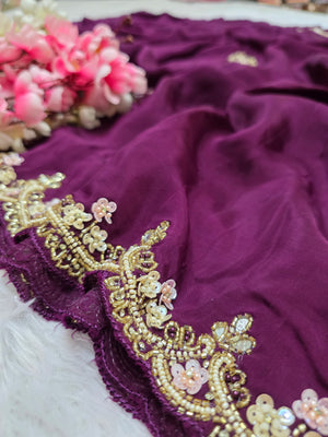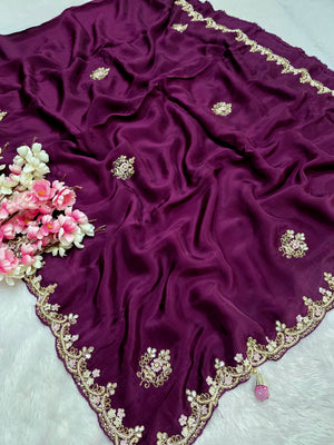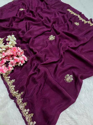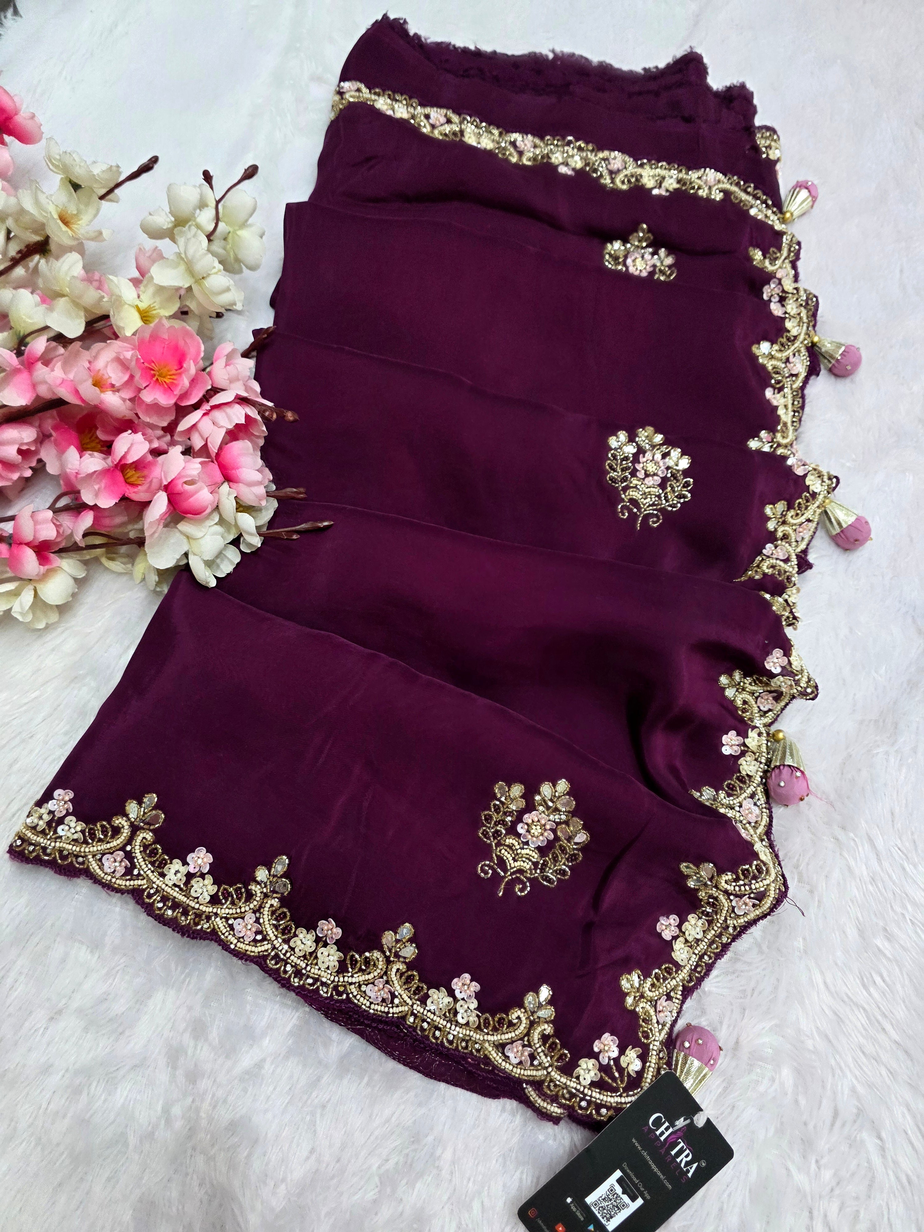 909003 Pure Crepe Silk Party Wear Saree With Premium Handwork 1700